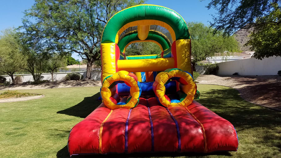 Looking for an exciting addition to your event in Avondale, AZ? Our 35ft Neutral Dual Lane Obstacle Course is the perfect choice for backyard parties, church events, and school functions. This inflatable obstacle course offers an exhilarating experience for participants of all ages, with its double lanes ensuring high traffic flow and competitive fun.