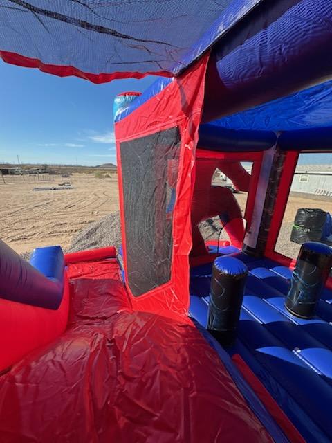 Transform your party into a thrilling experience with our SpiderMan combo, available for bounce house rental in these delivery areas. Let the kids bounce, slide, and have a blast in this exciting inflatable castle featuring everyone's favorite web-slinger!