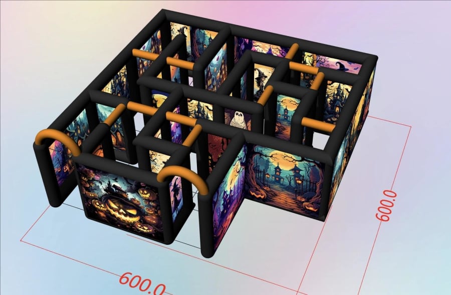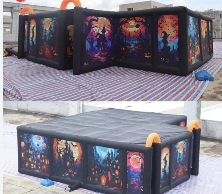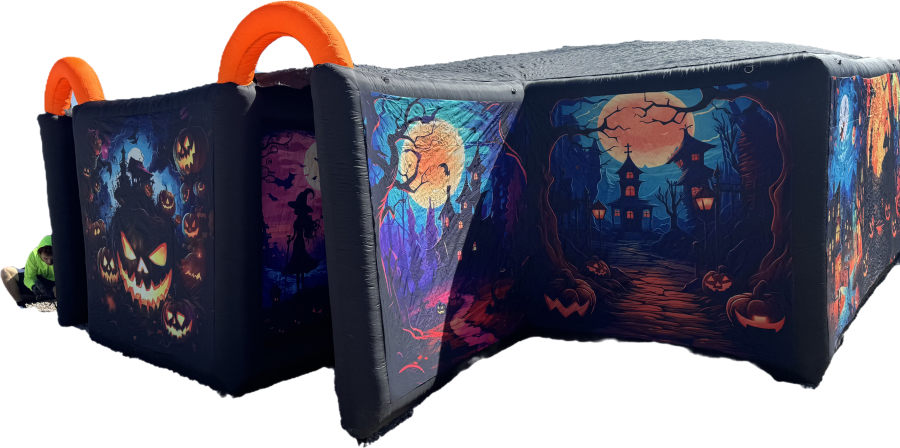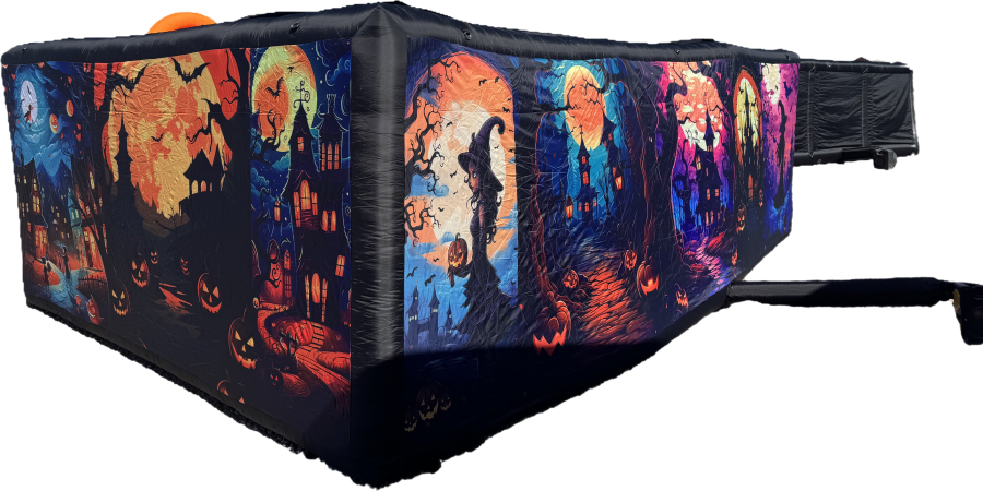 halloween fun house 3-D Haunted house in Chandler, Gilbert, Buckeye, Verrado, Litchfield Park, Goodyear delivers a fully themed inflatable scare house maze built to spook and entertain. Bright, 3-D printed artwork features witches, ghosts, a spooky house, jack o'lanterns and bats. Perfect for community events, school parties, corporate Halloween nights, and backyard scares. This Haunted House packs visual impact and jump-scare fun into one portable fun house. πΈοΈπ¦