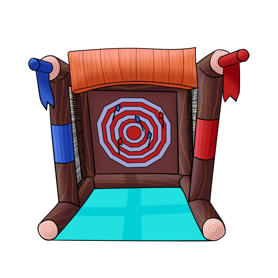 Bring excitement and laughter to your next event with our Throwing Axe Game! Perfect for kids of all ages, this inflatable game guarantees hours of safe and thrilling fun. With its foam, vinyl, Velcro, and plastic axes, there's no need to worry about sharp objects. Whether you're hosting a birthday party, school event, or church gathering, our throwing axe game rental is the perfect addition.
