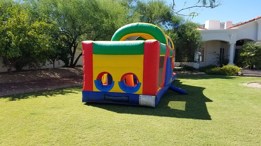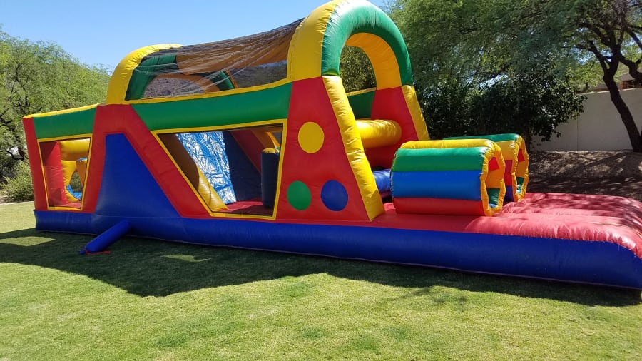 Looking for an exciting addition to your event in Avondale, AZ? Our 35ft Neutral Dual Lane Obstacle Course is the perfect choice for backyard parties, church events, and school functions. This inflatable obstacle course offers an exhilarating experience for participants of all ages, with its double lanes ensuring high traffic flow and competitive fun.