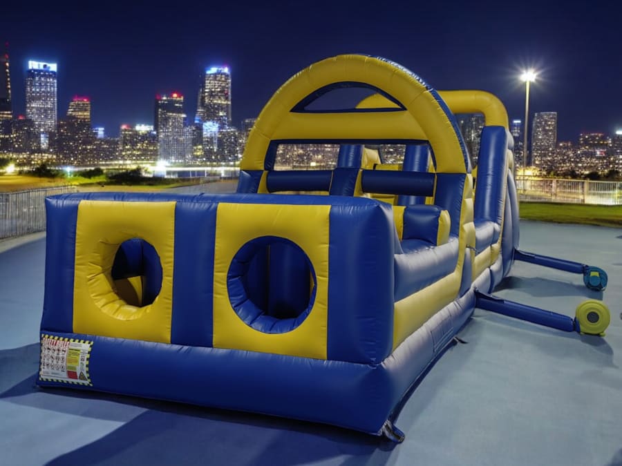 Experience Thrilling Fun with Our 50ft Yellow Double Lane Obstacle Course! 🎉